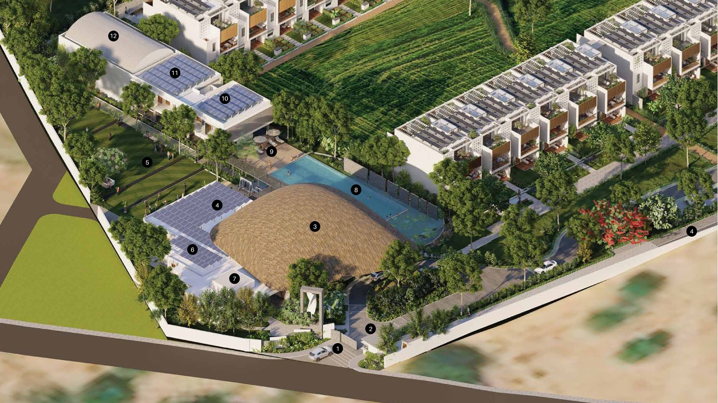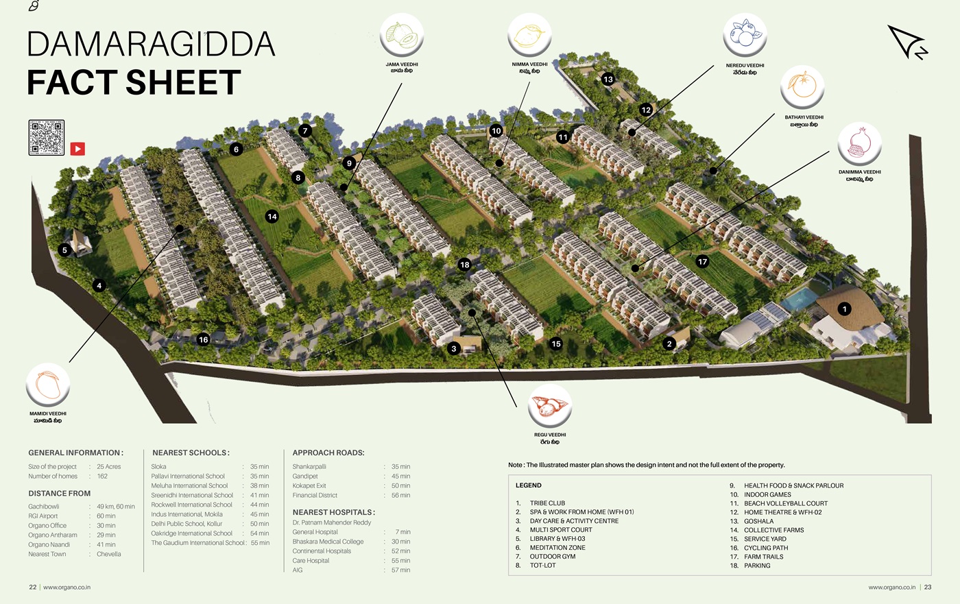 Step into Organo Damaragidda, a peaceful 25-acre haven blending rural charm with urban convenience. Explore 162 homes inspired by traditional Indian village design, fostering community spirit while communal farms promote sustainable living. Enjoy eco-friendly amenities like collective farms and lush food forests, and find shared spaces for relaxation, dining, and gatherings. Stay active with a natural swimming pond, gym, and sports courts, while co-working spots cater to work needs. Organo Damaragidda prioritizes the environment with rainwater collection, solar energy, and green areas. Homes around 3100 sq ft, starting at Rs. 2.95 Crores, offer rurban living-city comfort with countryside peace. Experience sustainable joy and a close-knit community at Organo Damaragidda.The gates of Organo Damaragidda await your exploration!